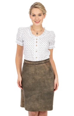 Perfekter Sitz garantiert. Der kurze Lederrock ICKINGER im Farbton Stein-Antik versteht es, mit wenigen Details auf sich aufmerksam zu machen. Der Rock ist gerade geschnitten und endet knapp über dem Knie. Durch die leichte Schwärzung des Leders wird die Taille geschickt betont und dadurch der Blick auf das Oberteil gelenkt. Schöne Hingucker sind die doppelreihigen Ziernähte, die sich zu beiden Seiten des Lederrocks finden. Tragen Sie zu diesem Rock eine feminine Rüschenbluse.